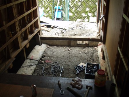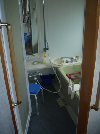 以前のユニットバスは、1坪タイプで出窓の部分のみ外壁がでていましたが、今回は1.25坪タイプの為、基礎工事・外壁工事が必要となりました 外壁は『三十板』というサイディングの一種のものをはり、それに吹きつけ塗装をして既存の外壁に似た色をつけます 遠目で見たら違いがほとんどわかりません