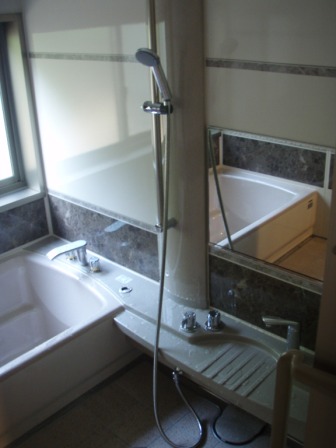 ちなみに写真では分かりにくいのですが ユニットバスのYKK製サッシのガラスは、 ブラインドが内臓されたものとなっています 従来のものより、はるかにお手入れが らくチンです